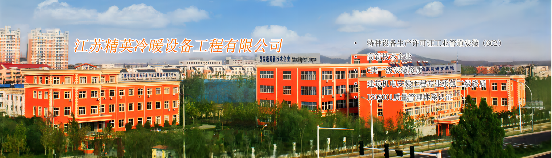江蘇精英冷暖設(shè)備工程有限公司位于江蘇省徐州高新技術(shù)產(chǎn)業(yè)開發(fā)區(qū)第二工業(yè)園昆侖路14-2號(hào),為高新技術(shù)企業(yè),公司擁有ISO9001質(zhì)量管理體系認(rèn)證、ISO14001環(huán)境管理體系認(rèn)證、ISO45001職業(yè)健康安全管理體系認(rèn)證、工業(yè)管道安裝(特種設(shè)備安裝、修理、改造)GC2資質(zhì)、建筑機(jī)電安裝工程專業(yè)承包貳級(jí)資質(zhì)、安全生產(chǎn)許可證、C類I級(jí)安裝資質(zhì)、農(nóng)機(jī)補(bǔ)貼定點(diǎn)企業(yè)及制冷設(shè)備國(guó)家標(biāo)準(zhǔn)《GB/T18430.2-2008》、《藥品冷鏈物流運(yùn)作規(guī)范》、《冷鏈物流分類與基本要求》的起草單位等資質(zhì)。